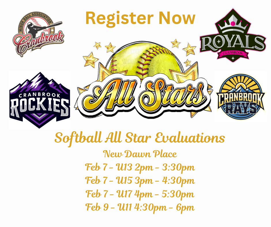 Softball All Star evaluations Registration Now Open.